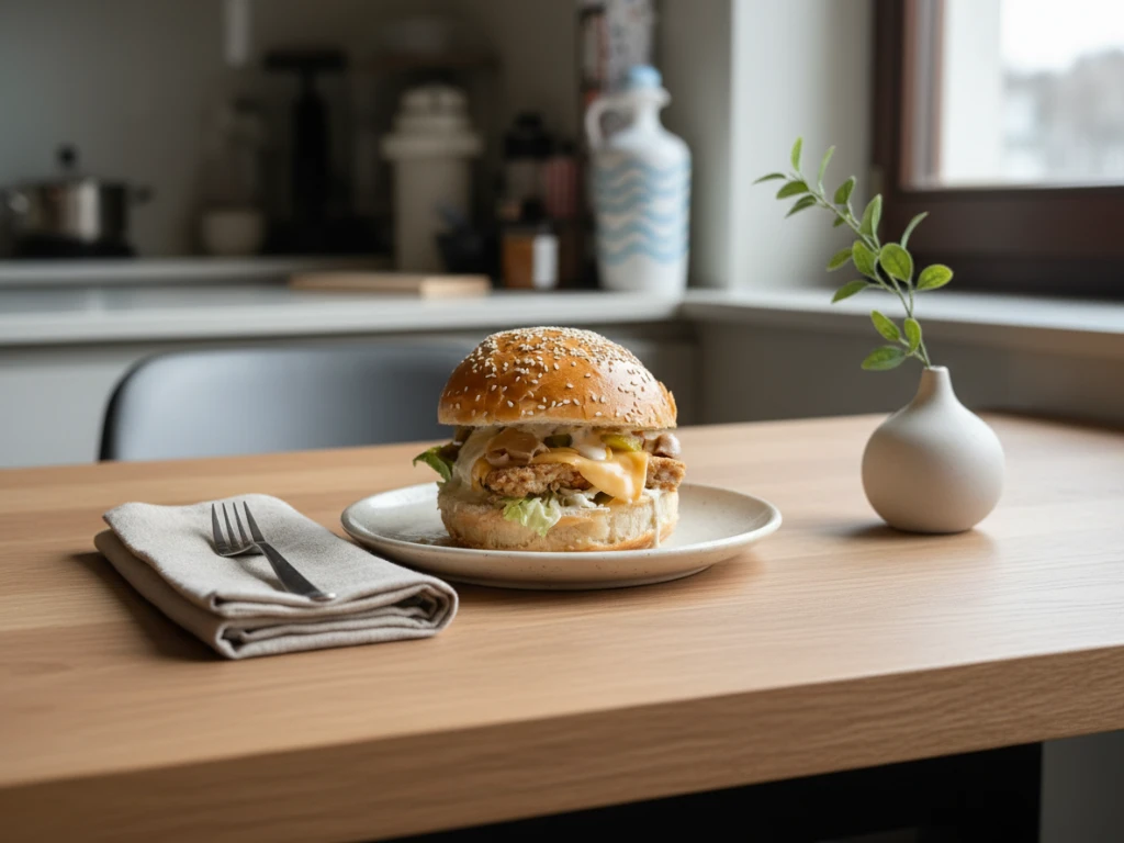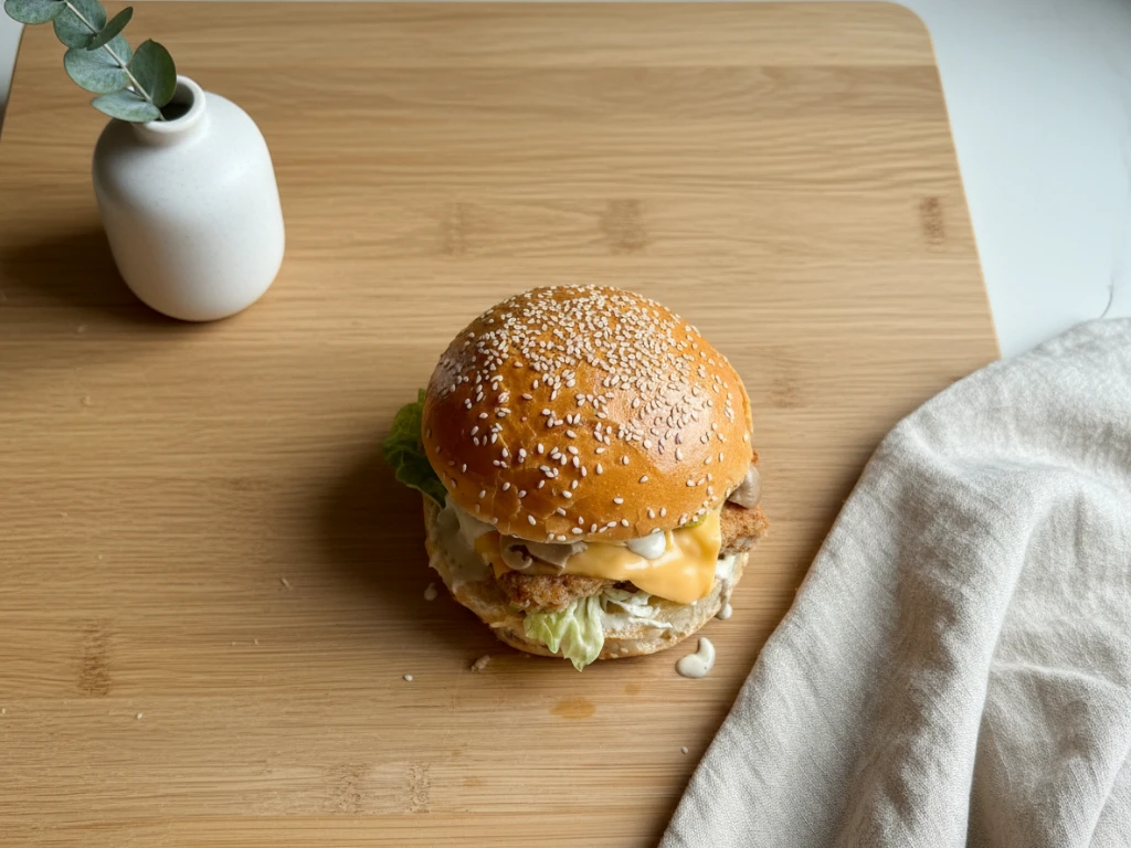 Są takie dni, kiedy mamy ochotę na coś konkretnego. Coś między street foodem a domową kuchnią. Burger, który syci, pachnie i daje tę przyjemność pierwszego kęsa – ale bez ciężkości i bez mięsa. Ten roślinny burger „a’la ryba” to właśnie taki przepis: prosty, ale przemyślany. Z kremowym sosem, chrupiącą sałatą i dodatkami, które robią całą robotę.