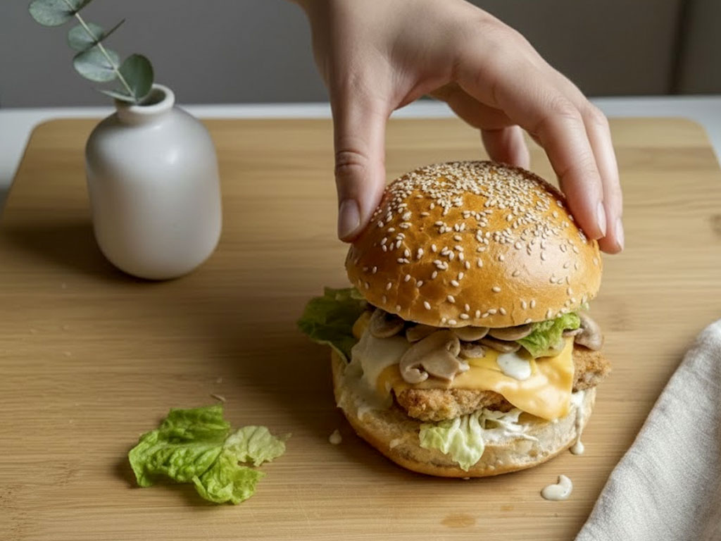 To jeden z tych przepisów, które nie udają niczego więcej, niż są: dobry, sycący burger roślinny, który smakuje zarówno weganom, jak i tym, którzy po prostu mają ochotę na coś konkretnego – bez mięsa i bez nudy.
