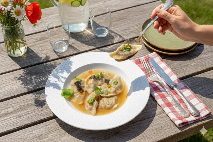 Te orkiszowe pierogi wegańskie w bulionie miso to danie, które pokazuje, że kuchnia roślinna może być kreatywna, pełna smaku i zupełnie nieoczywista. To coś więcej niż tylko comfort food – to kulinarna podróż od polskich stołów po daleką Azję, zamknięta w jednej misce.