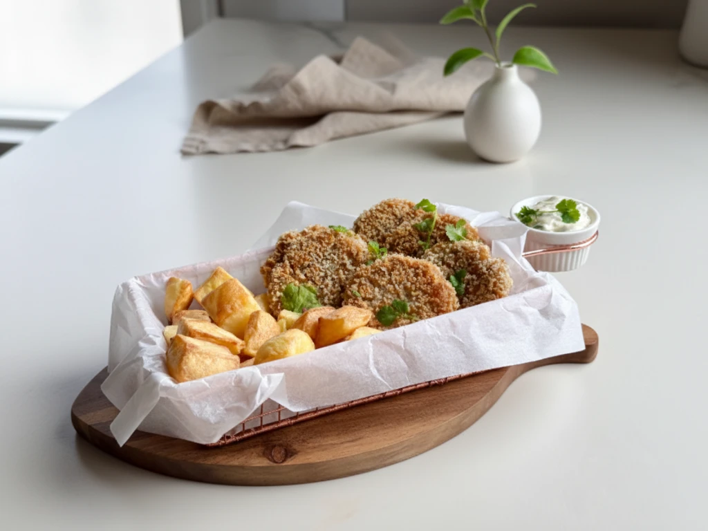 Są takie smaki, które kojarzą się z beztroską – chrupiąca panierka, złociste ziemniaczki i kremowy sos do maczania. Ten przepis to roślinna wersja klasycznego comfort food, który zna chyba każdy: nuggetsy w stylu rybnym, ale bez ryby, za to z pełnią smaku i tekstury.