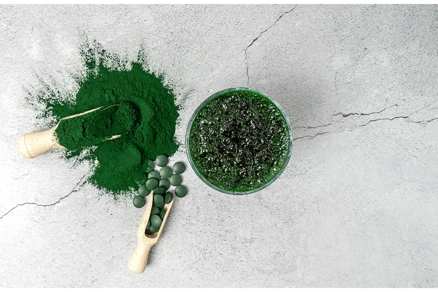 - Chlorella – alga o wysokiej zawartości białka i chlorofilu.